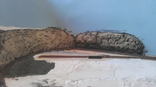 Das Gelände wurde mit Styrodur unterfüttert und dann mit Gips überzogen.